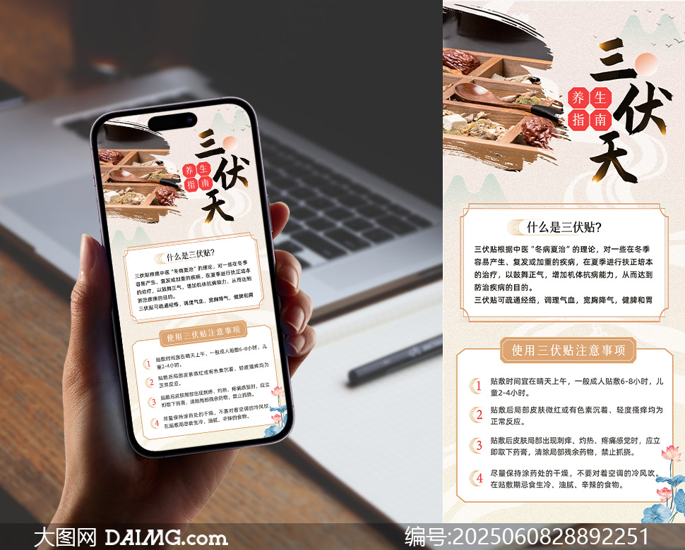 素材标签冬病夏治 养生之道 中医养生 中医疗法 什么是三伏贴 使用三伏贴注意事项 三伏天养生指南 墨迹笔触 养生挂图 养生挂画 冬病夏治移动端海报 冬病夏治手机海报 冬病夏治手机端海报 H5长图海报 广告设计 海报设计 PSD素材