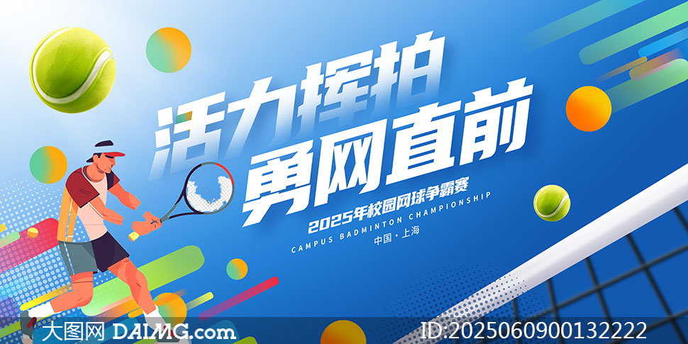 特别说明校园网球争霸赛活动背景展板PSD素材下载,素材包含网球比赛宣传海报、网球大赛背景板等内容,图片编号为2025060900132222,素材格式为PSD,素材大小为28.13 MB,素材以RAR压缩包形式提供下载,下载后请自行解压,大图网提供该素材下载服务。