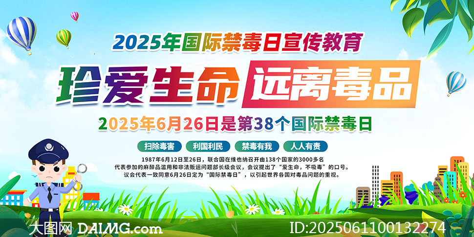 素材标签2025年国际禁毒日 国际禁毒日 2025年全民禁毒宣传月 全民禁毒宣传月 第38个国际禁毒日 626国际禁毒日 珍爱生命 远离毒品 扫除毒害 利国利民 禁毒有我 人人有责 禁毒知识科普 国际禁毒日宣传栏 国际禁毒日展板 展板设计模板 PSD素材