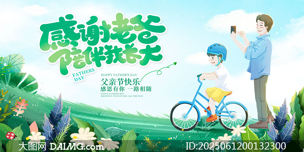 感谢老爸陪伴我长大父亲节展板PSD素材