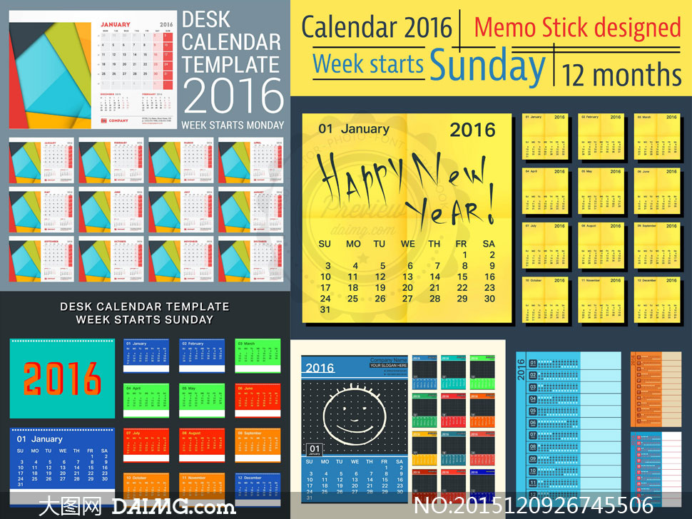 2016年日历主题矢量素材集合V.25
